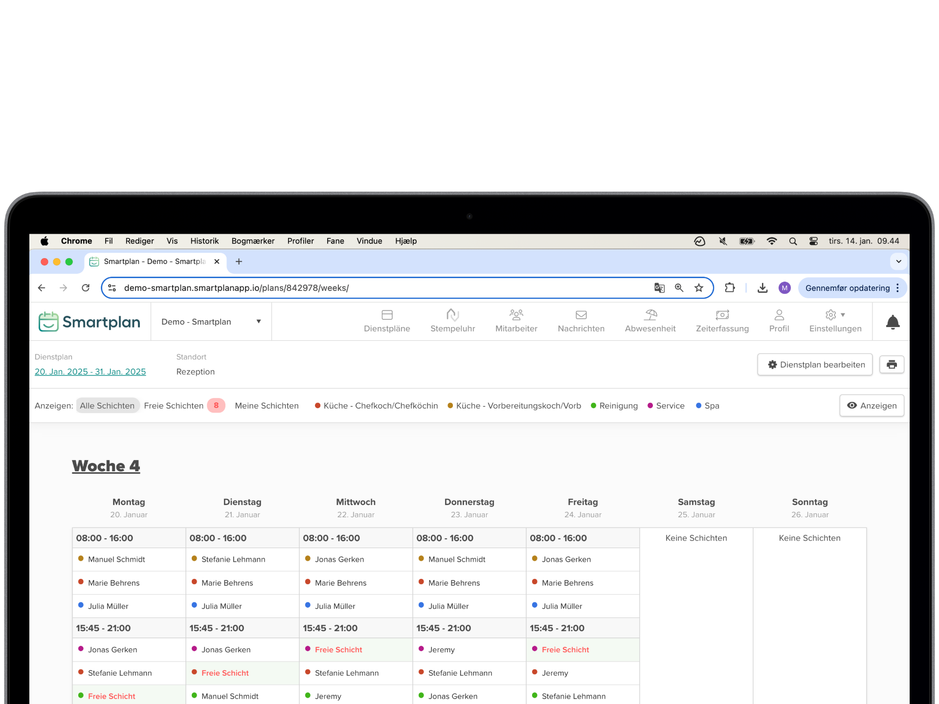 “Als wir nach einer neuen Lösung für die Schichtplanung suchten, sind tatsächlich mehrere von uns auf Smartplan gestoßen. Es fühlte sich sofort wie eine vernünftige Wahl an – sowohl in Bezug auf den Preis als auch auf die Benutzerfreundlichkeit des Systems.”